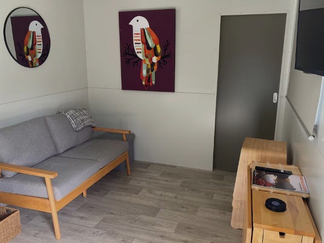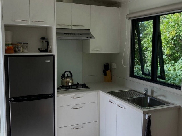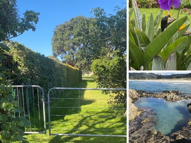 This fully self contained holiday option is nestled away from the main house on a property with established gardens of mature trees, Kentia and Nikau palms which attract abundant native bird life, Tui, Wood Pigeons, Kaka, Fantail, Banded Rail and more.