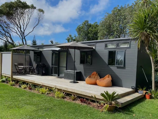 Medland's Beach Hideout is a brand new tiny house conveniently located just 200 metres from the Barrier's most popular beach. You'll stroll down a private lane to the pristine white sands, world class surfing and crystal-clear blue waters of Medlands Beach. This private sunny option is situated near the middle of the bay and handy to the large rock pool at Memory Park, which is perfect for all ages.